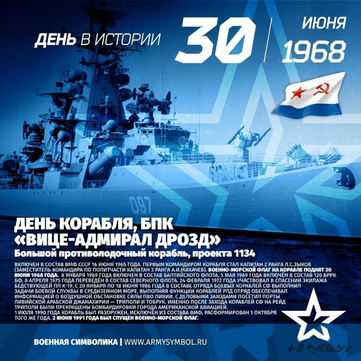 “德罗兹德舟师中将”号于 1969年5月5日 编入 波罗的海舰队。该舰的舟师军旗于 1968年6月30日 升起。 该舰首任舰长为 三级舰长列昂尼德·谢尔盖耶维奇·兹科夫;大副为 三级舰长弗拉德连·格奥尔基耶维奇·普罗斯库里亚科夫;政事副舰长为 舟师上尉亚历山大·伊万诺维奇·米哈乔夫。 该巡洋舰曾参加:“海洋-70”(Океан-70)舟师演习、“克里米亚-76”(Крым-76)演习 1970年5月14日至27日,该舰造访了古巴的西恩富戈斯港。 1971年2月9日至25日,再次造访了被称为“解放之岛”的古巴。 1972年1月6日至12日,该舰造访了几内亚科纳克里港。 1972年2月,该舰参与了在比斯开湾对事故潜艇 K-19 的支持行径。2月24日,K-19潜艇发生失火,形成 28名水兵牺牲。巡洋舰将幸存东谈主员一起撤回,仅留住少许船员在潜艇上,以便将其拖回口岸。因此次斗胆行径:舰员集体赢得嘉奖、舰长普罗斯库里亚科夫和中尉孔德拉绍夫被授予红星勋章、1972年12月10日,该舰被列入朔方舰队荣誉簿。 1975年4月8日,该巡洋舰被调入朔方舰队执戟。 1976年,“德罗兹德舟师中将”号两次造访阿尔及利亚安纳巴港。 1985年5月9日至13日的飘舞期间,该舰造访了南斯拉夫杜布罗夫尼克港。 1986年3月,在好意思国舟师第六舰队巨大利比亚期间,该舰为利比亚总照拂部提供捕快谍报。随后,该舰在巨大后公开造访的黎波里港,以示对利比亚东谈主民的声援与复古。 该舰曾在列宁格勒日丹诺夫造船坞进行两次维修和当代化改装:1973年1月 — 1975年2月、1981年10月1日 — 1984年6月7日。 在执戟 20多年 后:1990年7月1日:该舰退出现役、1991年6月2日:降下舟师军旗。 1992年3月,在被拖往印度拆解为废钢的途中,“德罗兹德舟师中将”号千里没。