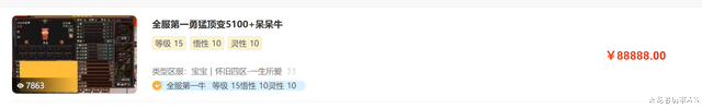 一个号称全服第一勇猛顶变5100+的呆呆牛,开云中国app登录入口售价居然高达88888元?