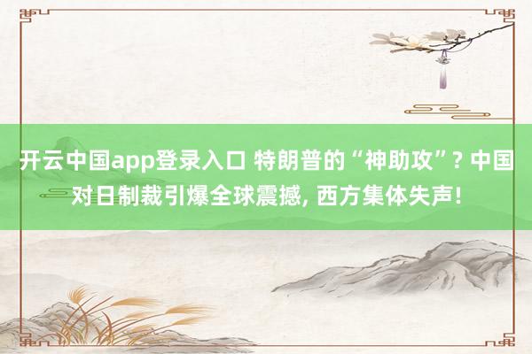 开云中国app登录入口 特朗普的“神助攻”? 中国对日制裁引爆全球震撼, 西方集体失声!
