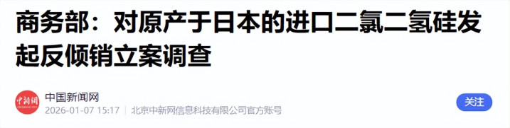 高市早苗利用舆论战打击中国战略,显然无法从根本上改变中国立场,中国也已经为接下来的行动做好了准备。 局势进一步发展下去,高市市政府将会面临更大的挑战,甚至有可能会影响到政治生涯的稳定性。 参考资料: 1.《中方公告:加强两用物项对日本出口管制》2026-01-06 16:42 | 来源:光明日报 2.《商务部:对原产于日本的进口二氯二氢硅发起反倾销立案调查》2026-01-07 15:17 | 来源:中国新闻网 3.《中国出手反制日本“再军事化”意图》2026-01-11 21:06 | 来源:光明网 4.《日本就中方加强出口管制提出抗议,要求撤回,外交部回应:中方措施完全正当合理合法!》2026-01-07 17:03 | 来源:每日经济新闻 |