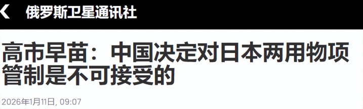 我商务部1月6日发布今年的第1号公告就剑指日本。公告内容显示,禁止所有两用物项对日本军事用户、军事用途,以及一切有助于提升日本军事实力的其他最终用户用途出口。任何国家和地区的组织和个人,违反上述规定,将原产于中国的相关两用物项转移或提供给日本的组织和个人,将依法追究法律责任。 这条公告直接封死了日本从中国或其他进口中国两用物项的国家,获取用于军事目的相关材料的途径。 {jz:field.toptypename/}就在中方在两用物项方面反制日本的第6天,日本首相高市早苗终于打破沉默,对此事进行了正面回应。 高市早苗的嘴依旧很硬,她直言对中方的做法无法容许,也无法接受,委屈表示,中国加强两用物项的出口措施只针对日本,严重违反了“国际惯例”,日方就此已经向中方提出强烈抗议,并要求中方撤回有关的管制措施。