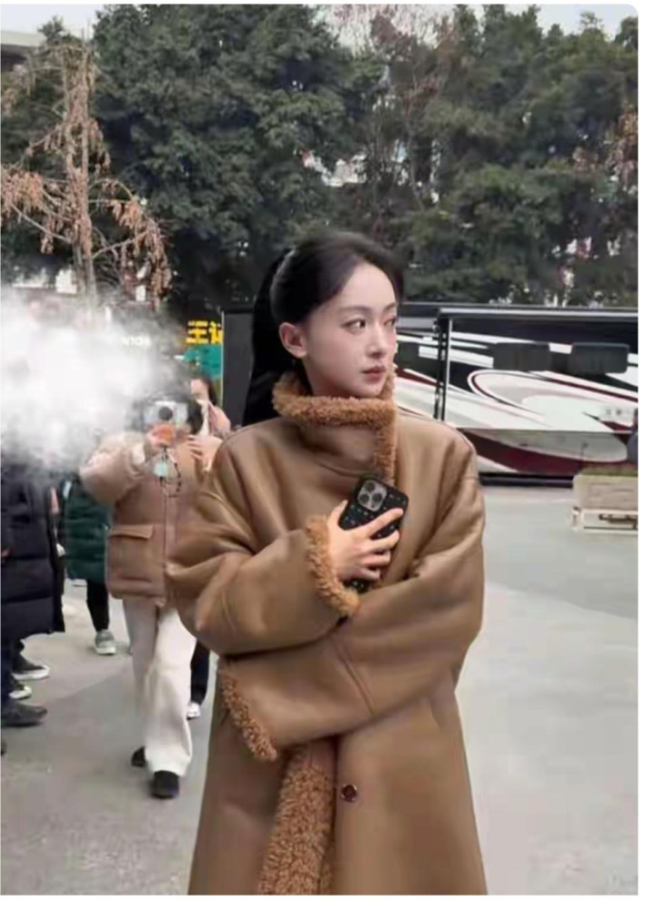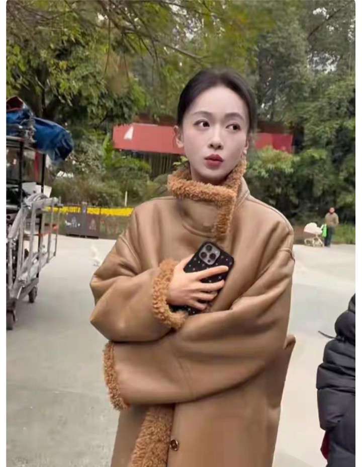 开云app登录 吴谨言一身卡其色大衣, 衬托出苗条的身材, 扎着高马尾, 显年轻。