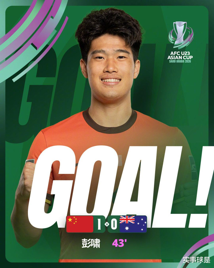 1月11日晚,在2026亚足联U23亚洲杯小组赛第2轮D组一场关键较量中,中国U23队在沙特阿拉伯利雅得沙巴布体育场苦战90分钟,最终凭借“带刀后卫”彭啸的进球,以及门将李昊的神勇发挥,以1-0战胜澳大利亚U23队,获得首胜,并暂时升至榜首。