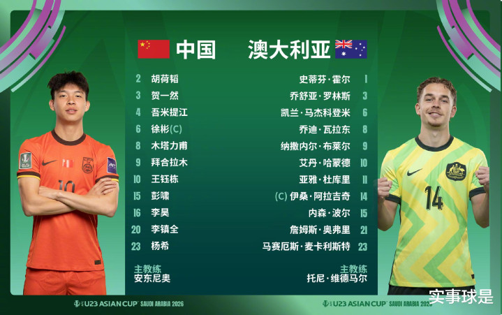 2025年9月,在本届U23亚洲杯预选赛中,中国U23队(当时为U22队)曾和澳大利亚队0-0握手言和。对比首发名单可以看出,U23国足基本沿用了此前的阵容,就调整了3个位置,即用杨希、贺一然、木塔力甫,代替了刘浩帆、汪士钦、杨皓宇。澳大利亚U23队则只有3人参加过去年预选赛与中国队的比赛,分别是:阿拉吉奇、布莱尔、波尔,可谓大变脸。