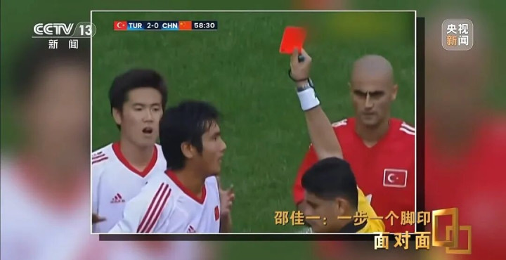 面对排名至最低谷,新老人才断档,舆论信心低落这样的局面,邵佳一媒体见面会上仍然表达了对世界杯梦想的坚持。邵佳一:成为国家队的主教练,只是我们的梦想和目标重要的一步,真正地带领国家队,能打出让我们国人满意的拼搏精神和成绩,实现我们所有国人多年的梦想,我觉得这才是我的目标,这才是我和我的团队的目标和梦想。2002年的韩日世界杯,是中国男足的黄金时刻。彼时22岁的邵佳一,凭借细腻的左脚技术和出色的任意球能力,赢得主教练米卢的信任,成功入围23人名单,站上了世界杯决赛圈的舞台。《面对面》节目主持人王宁:此时此刻你是国家队的主教练,你回到2002年世界杯赛前的那一晚,找到了邵佳一,你要跟邵佳一说句什么?邵佳一:明天上场千万别拿红牌。