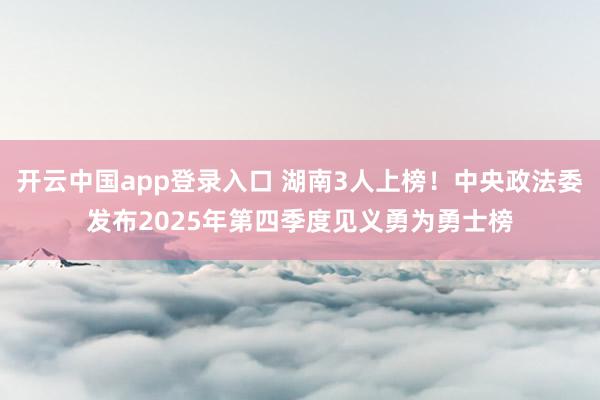 开云中国app登录入口 湖南3人上榜!中央政法委发布2025年第四季度见义勇为勇士榜