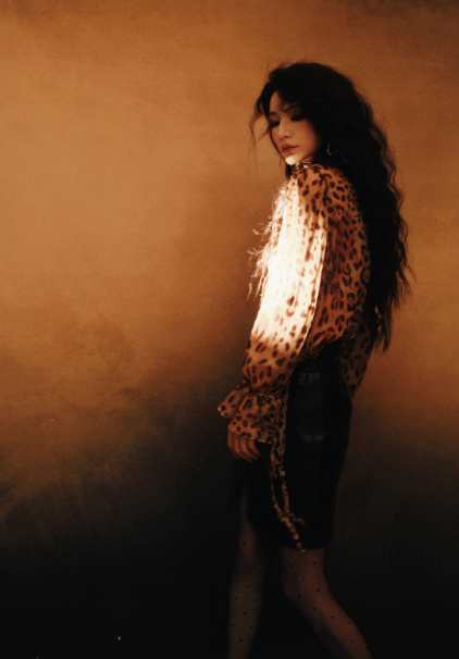 代斯的浓颜值豹纹外套皮裤配丝袜,冷酷迷人