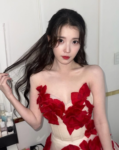 IU李知恩的玫瑰少女裙甜美穿搭