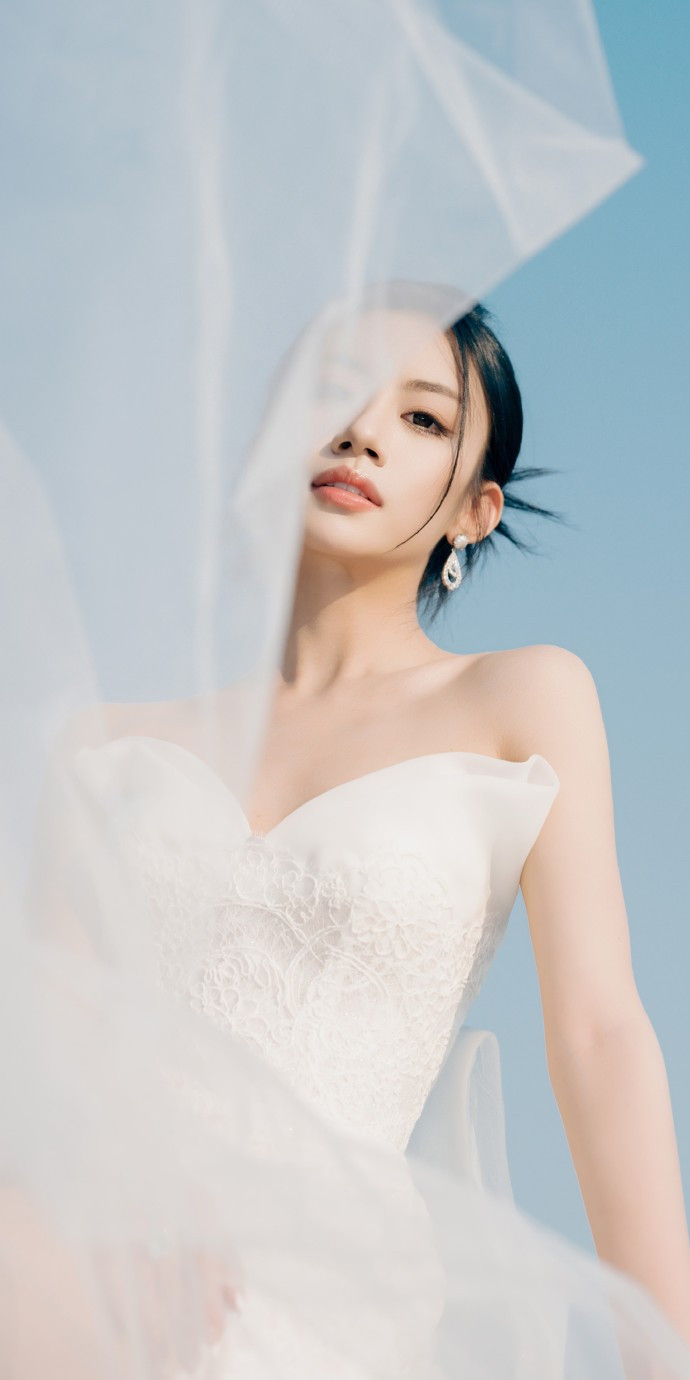 伍珂玥穿搭壁纸:白纱轻盈,