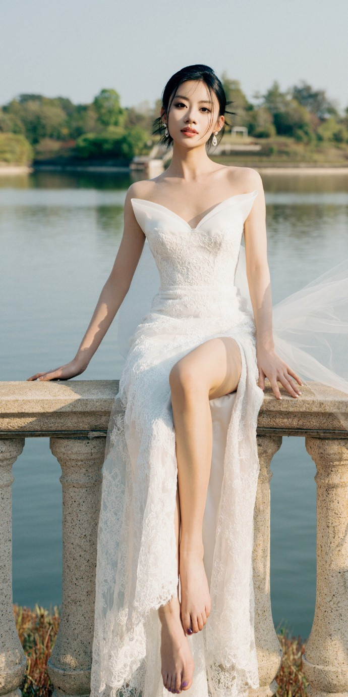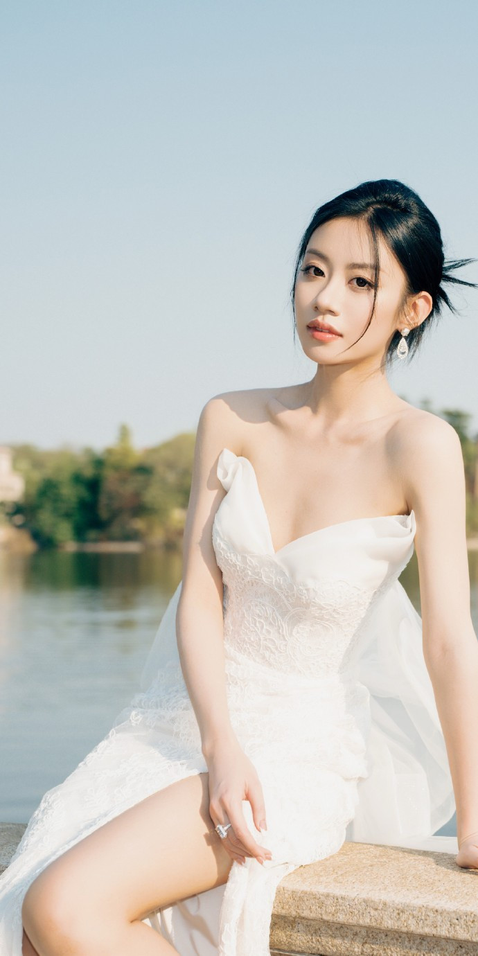 开云 伍珂玥穿搭壁纸: 白纱轻盈, 大长腿吸睛
