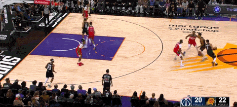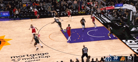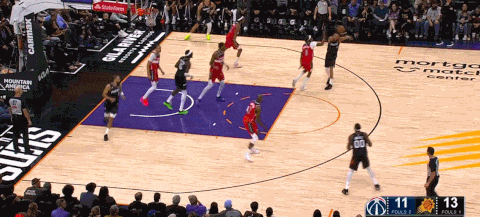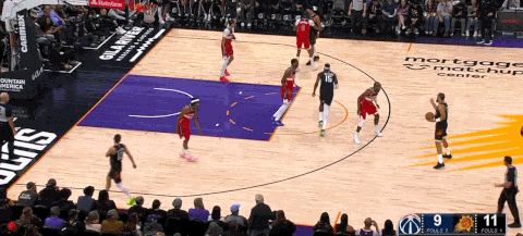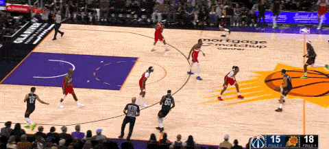 当马威采用幽灵掩护时,则拥有更快的顺下速度并考验萨尔的判断和身后的协防,这一次萨尔仍然把重心放在布克,底角启动的狄龙也及时清出空间,布克果断助攻马威空中接力连线。