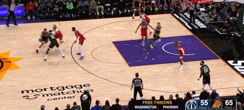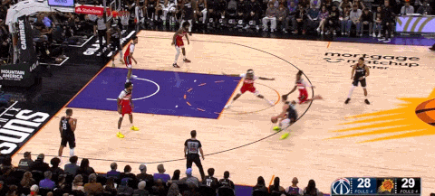 布克本赛季助攻数超过8时,太阳取得了10胜1负,而且最近几场布克的助攻失误比高了起来,和赛季初只能传安全球不同,布克最近能够传出穿越球场的纵向喂禁区和横向助攻外线的传递,本场个人进攻甚至算是比较划水,太阳轻松战胜奇才首次跻身西部前六。 弧顶的芝加哥发起,奥尼尔和马威提供掩护+手递手帮助布克快速开启进攻,布克拿球后利用米德尔顿的站位回给外线奥尼尔,后者虚晃攻击米德尔顿的脚步突破到禁区抛投得分。